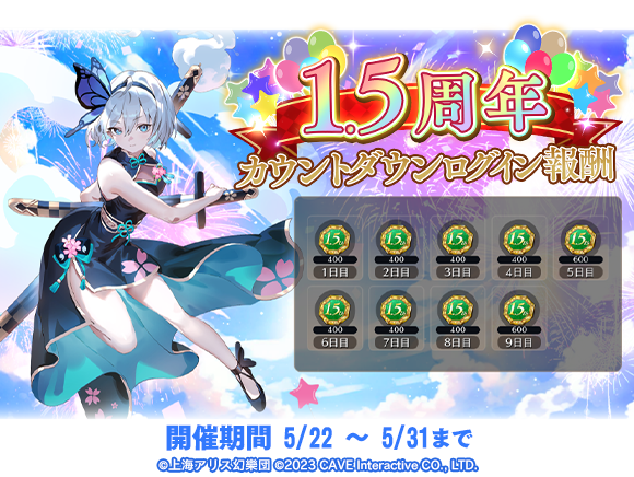 東方幻想エクリプスでは1.5周年を記念して、様々なイベントやキャンペーンの実施を予定しています。その中から、目玉となる情報をピックアップしてお伝えします。