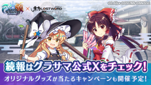 『グラサマ』×『東方LostWord』コラボ限定グッズが当たるキャンペーンも開催予定です。ぜひアカウントをフォローの上、コラボイベントの開始をお待ちください!
