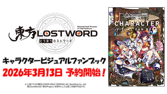 2026年3月13日(金) 『「東方LostWord」キャラクタービジュアルファンブック』予約受付開始!【博麗神社崇敬会】