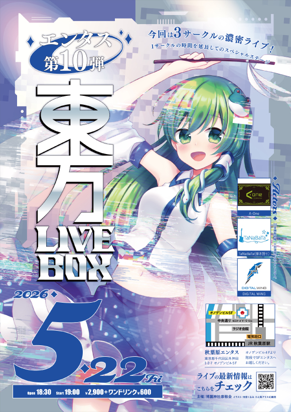 秋葉原エンタスでの開催もついに10回目。《東方LIVEBOX》第10弾が、2026年5月22日(金)「秋葉原エンタス(オノデンビル5F)」にて開催決定!